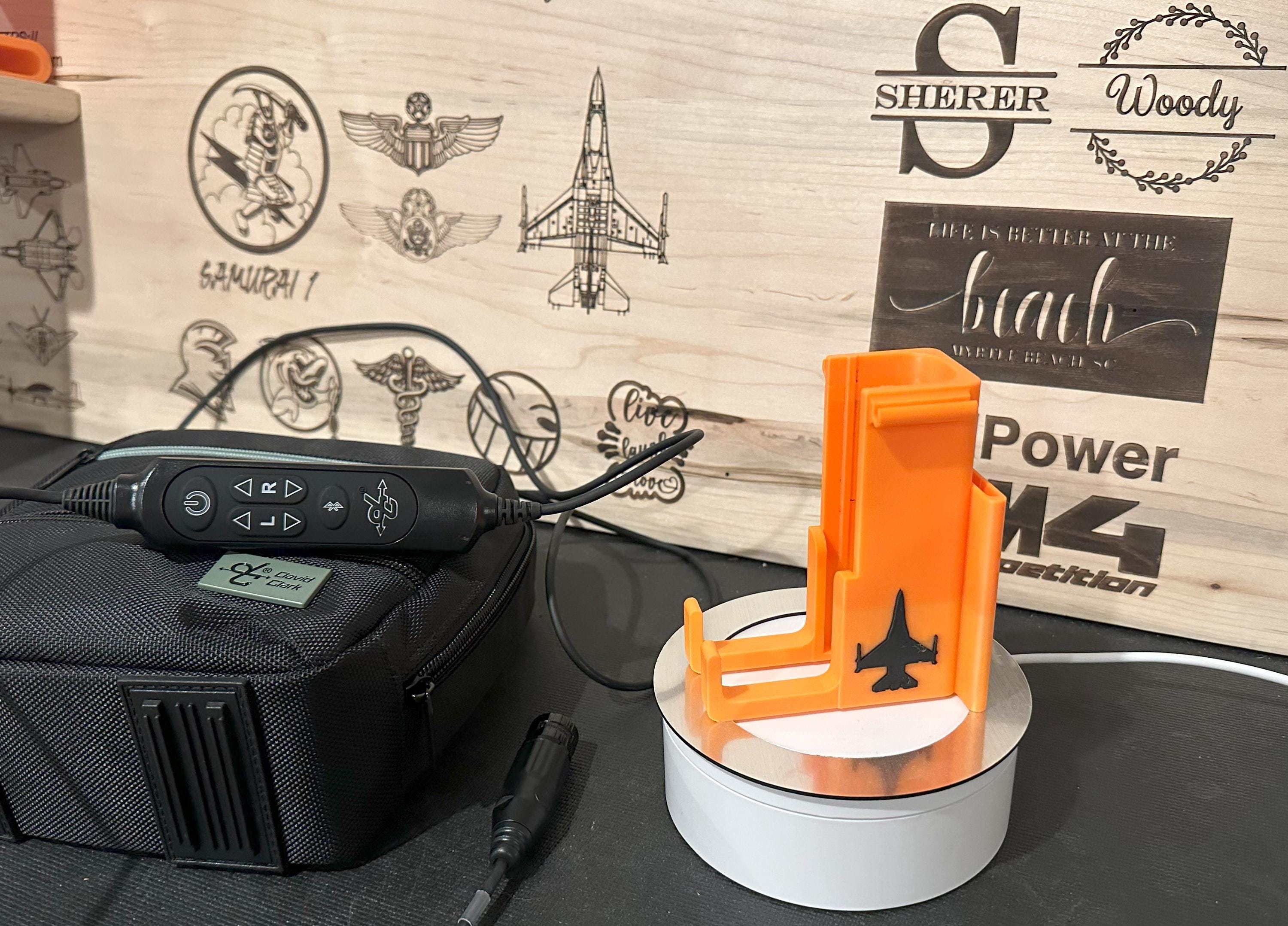 This cradle for your David Clark product was drawn using a non-active noise reduction (ANR) headset. It easily fits inside the original DC carrying case when not in use. Cradle slips over the column mounted bracket in Airbus aircraft and is designed/printed with built-in excess cable holders on the sides of the mount, easily holding your headset and excess cabling. The cradle is hand-drawn using Shapr3D which allows me to make additional changes and customization based on your requests. Product cost includes FedEx 2-day shipping and handling for all CONUS orders.