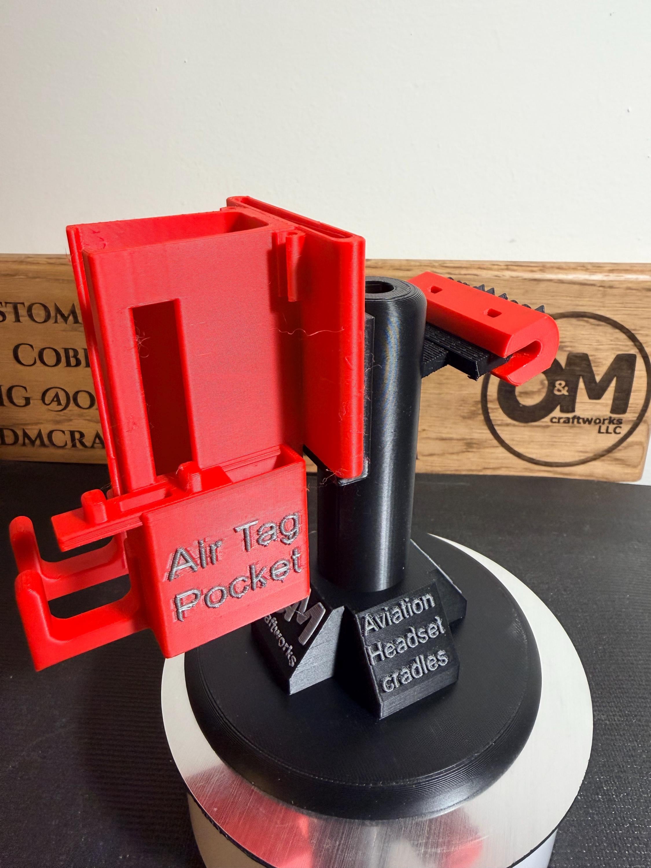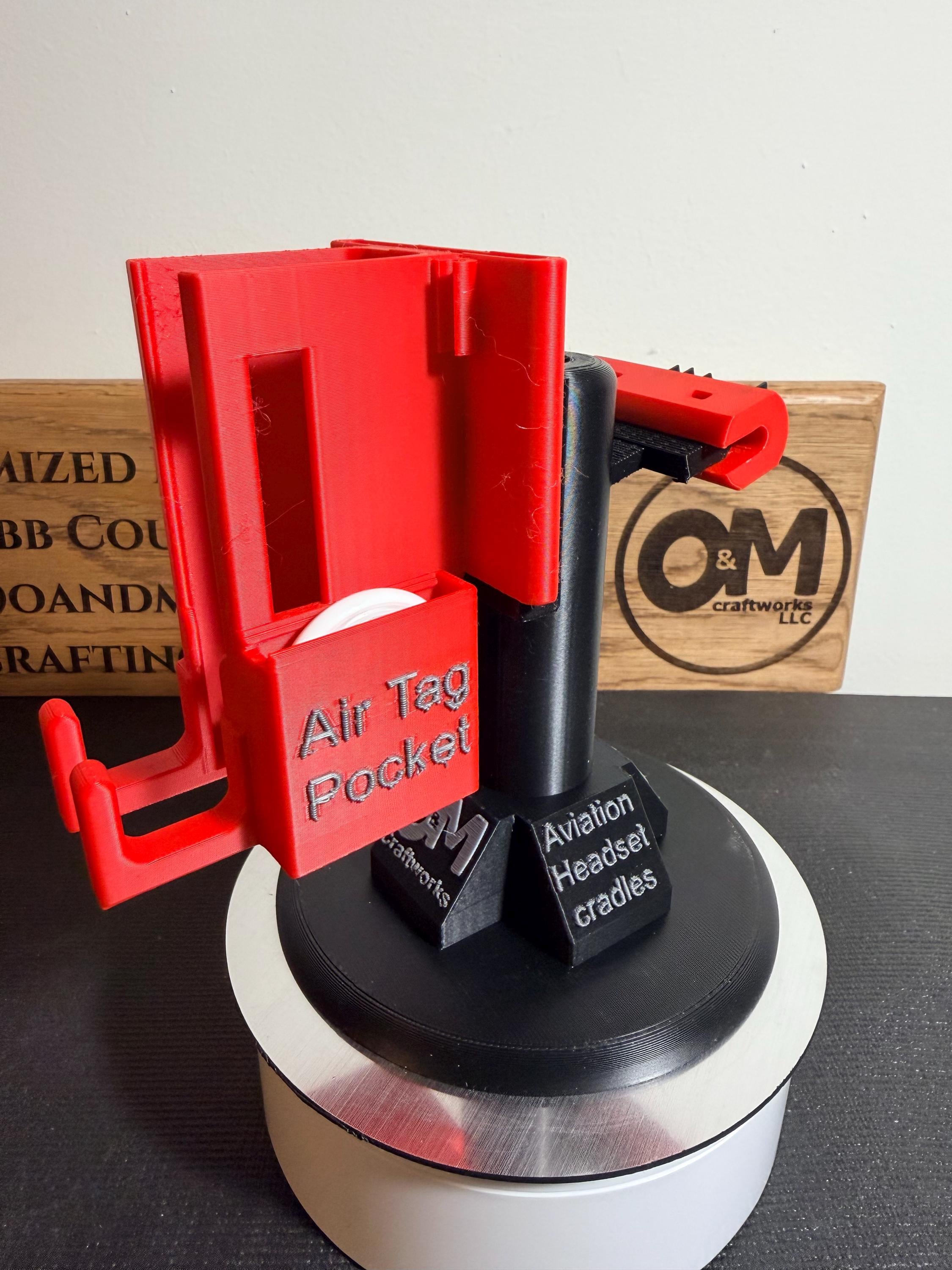 Product has a side pocket & cover for your Air Tag. Product cradles your Bose control module and excess cabling when mounted to the pillar and holds your headset when not in-use. Battery changes are effortless and the product fits inside the Bose carrying case when you're between aircraft. Product is created/modified with CAD allowing me to personalize for each customer's request. One line of text and one image included in pricing. S&H (2-day FedEx Express) included in pricing.