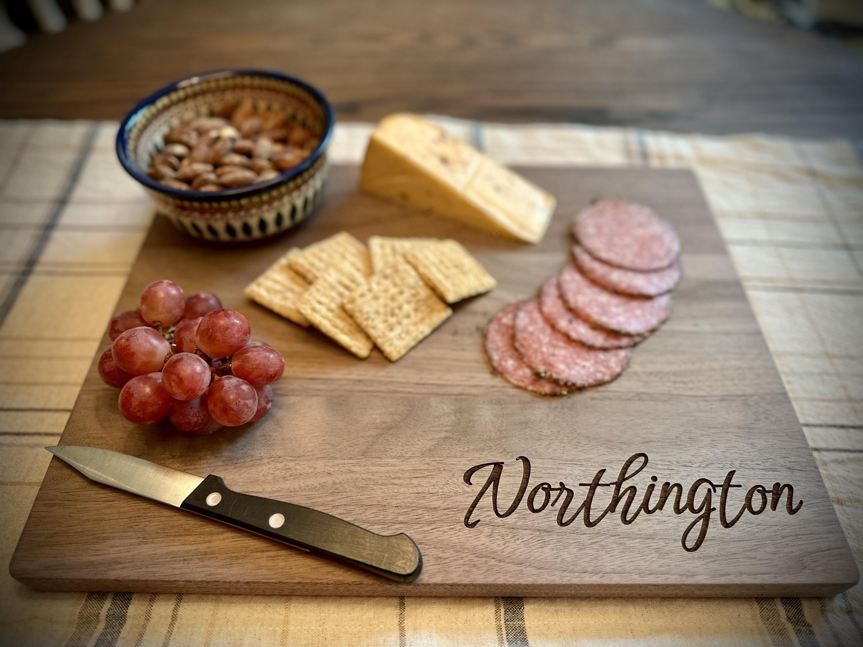 Elevate your kitchen with a blend of rustic elegance and personal storytelling. Handcrafted from premium American Walnut, this cutting board isn't just a kitchen tool—it’s a centerpiece. Whether you’re looking for the perfect wedding gift, a housewarming surprise, or a timeless heirloom for your own home, our custom laser engraving turns high-quality wood into a lasting memory.
